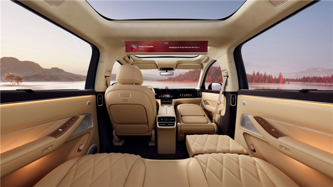 当目光从车外移至车内,这份优雅以一种更细腻的方式延续开来。问界M8 Max增程长续航版的座舱,不只追求视觉上的精致考究,更在意每一位乘员的舒适体验。其车内有效空间长达3510mm,得房率高达67.6%,五座版全车座椅折叠,六座版提供3-6座百变座椅模式,空间组合灵活多变,满足家庭出行的多元需求。全车还贴心设计了多处人性化储物空间,轻松收纳全家人的随行物品。更有HUAWEI SOUND音响、32英寸升降式投影幕布营造的沉浸式观影体验,让无论家庭出行还是好友结伴,都能在这方移动空间里,享受专属的舒适时光。